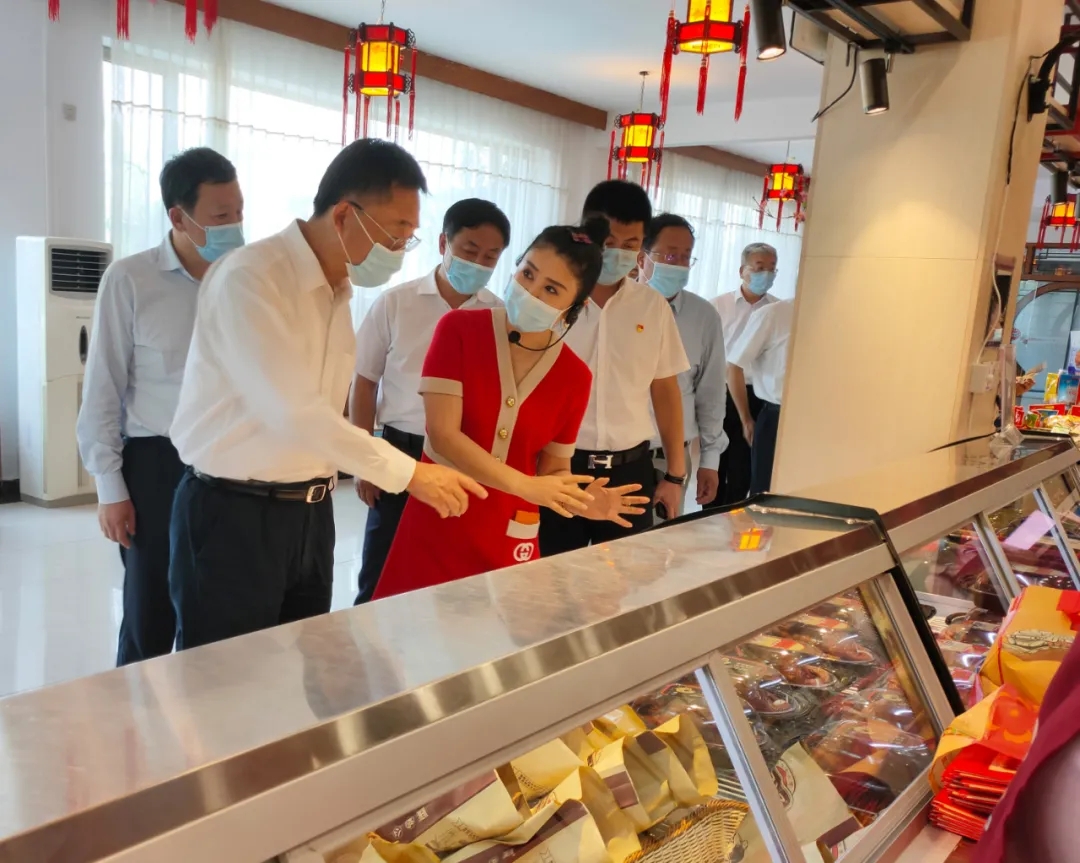 在集团展厅,刘宁省长详细听取了董事长王丽娜关于企业荣誉、发展历程、非遗工艺、产品系列的讲解;刘宁省长还着重询问了疫情对企业的影响、复工复产进展以及线上销售拓展等实际问题。